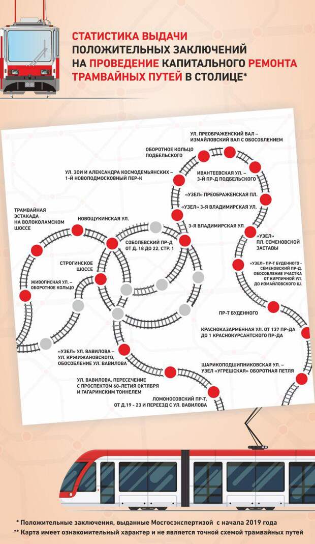 Согласован капитальный ремонт 20 трамвайных путей в разных округах города с начала года. Об этом сообщил председатель Москомэкспертизы Валерий Леонов. Информация об этом размещена на портале Комплекса градостроительной политики и строительства г.