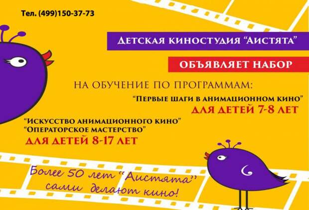 Если вы любите смотреть мультфильмы и мечтаете создать свой фильм, приглашаем на занятия в детскую киностудию «Аистята».